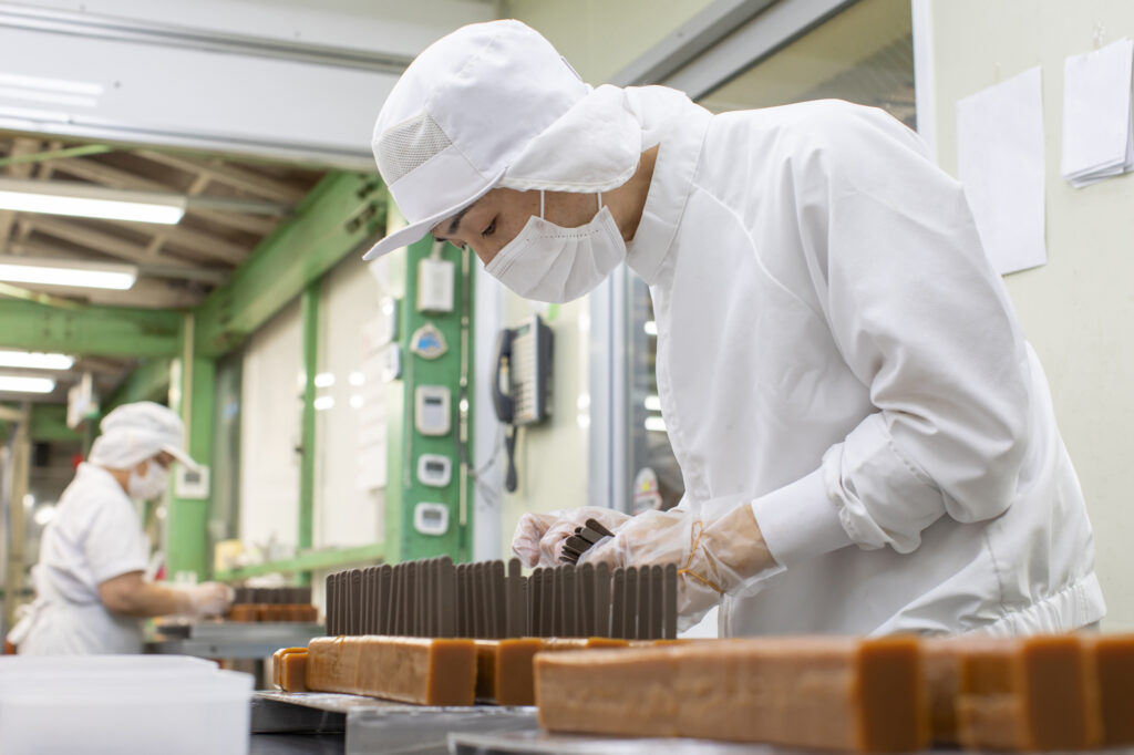 メインはウイロバーの製造です。ういろを切り出して、一つひとつにバーを差し、フィルムで真空パックするところまで関わっています。